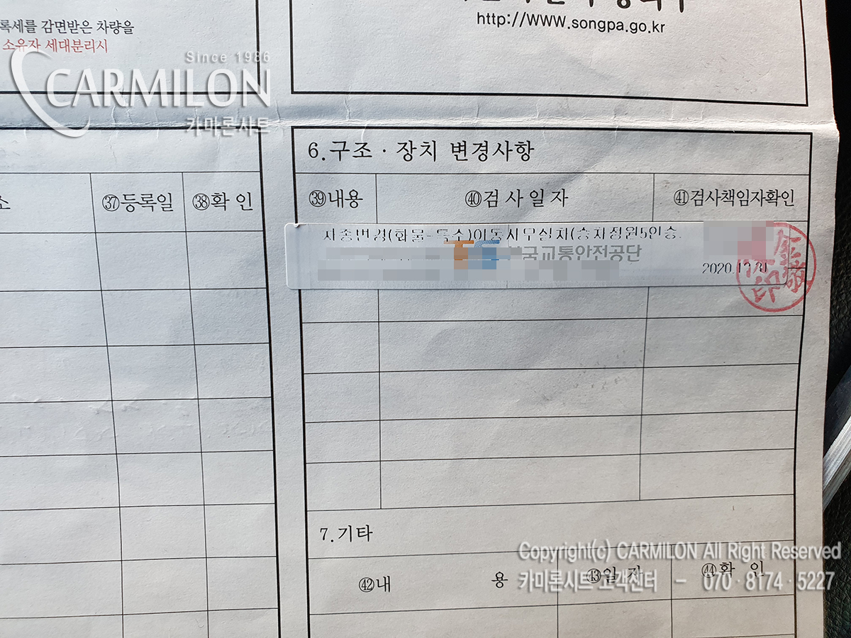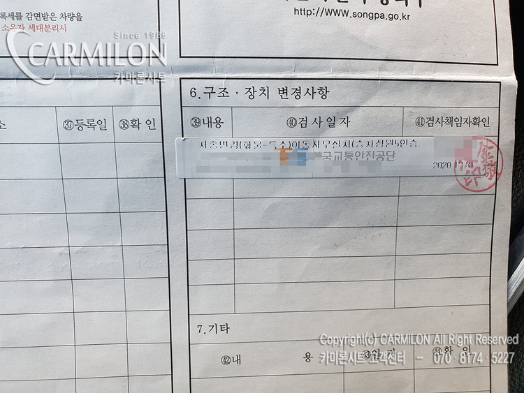 - 2열 등받이 각도개조(층생김/사진참고)