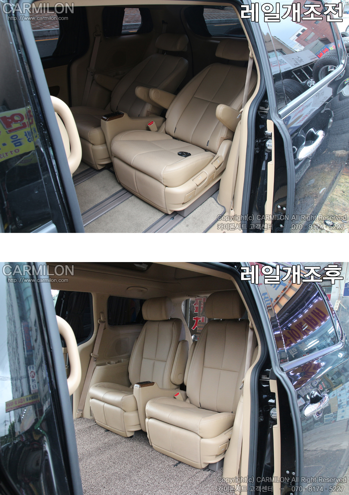 올뉴카니발7인승 레일개조 + 열선 +리클라인작업 CODE:003